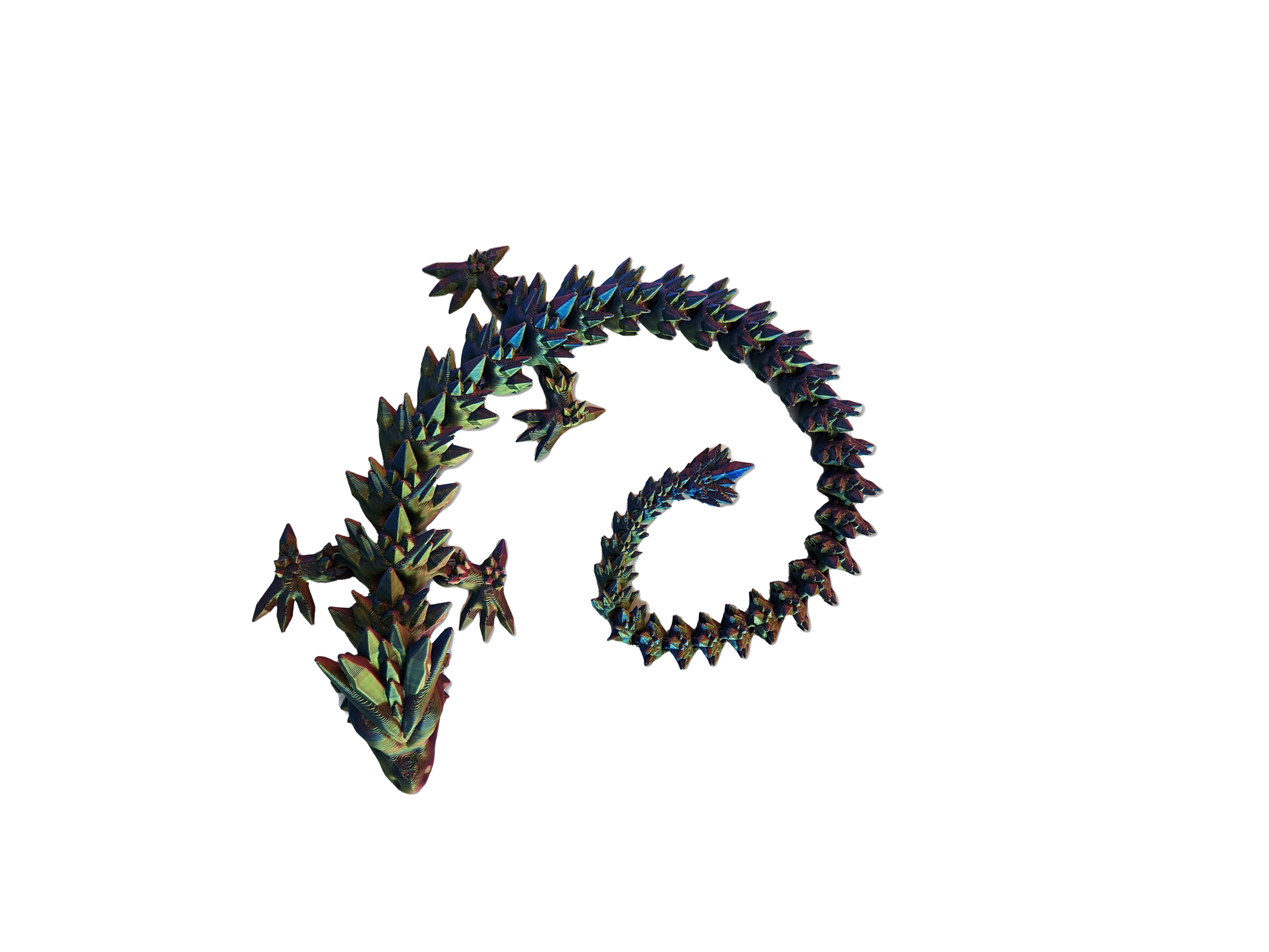 Experience the enchantment of our newly improved 3D printed dragon from Amerimaker. This unique, articulating dragon features a mesmerizing color-changing effect, shifting from red to purple to blue. Encased in a beautifully designed egg, this dragon boasts a new, stronger build for increased durability and playability. Uncover the magic of the intricately detailed dragon inside, perfect for imaginative adventures or stunning displays. Our 3D Dragon Egg with Dragon Inside is a must-have for fans of mythical creatures and those seeking a distinctive gift. Each dragon is meticulously crafted to ensure high-quality articulation and vibrant colors. Add a touch of fantasy to your collection with our improved design.