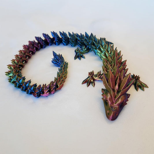 Huge 30" Articulated Crystal Dragon - Made in USA - 3D Printed, Fidget Dragon Articulating (Rainbow)