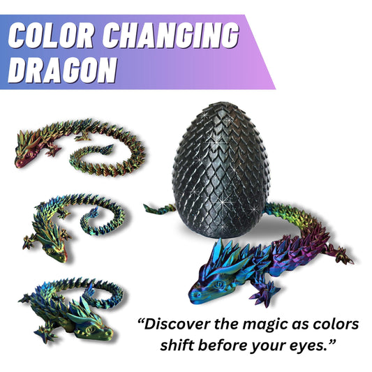 Big 20" Color Morphing, Dragon with Magic Sparkle Egg (Improved Design) Made in USA | Articulated 3D Dragon Egg
